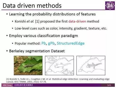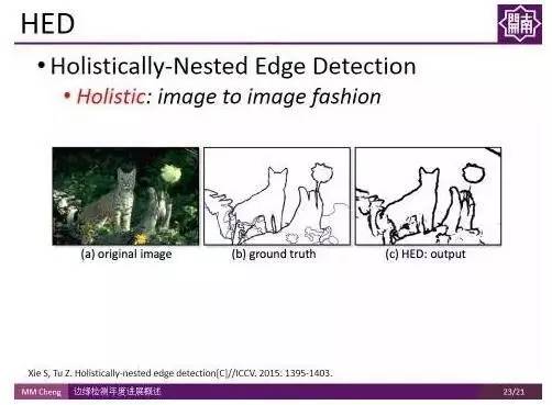 编者按:边缘检测是图像处理和计算机视觉中的基本问题,通过标识数字图像中亮度变化明显的点,来捕捉图像属性中的显著变化,包括深度上的不连续、表面方向的不连续、物质属性变化、和场景照明变化。南开大学的程明明副教授将带领大家回顾过去一年中,边缘检测领域在学术界的研究进展。文末提供报告中提到全部文章的下载地址以及程明明副教授组内工作的开源代码地址。