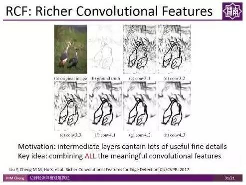 接下来,介绍的是程明明副教授课题组CVPR2017的工作。其实想法很简单,一句话就能概括,由于不同卷积层之间的信息是可以互补的,传统方法的问题在于信息利用不充分,相当于只使用了Pooling前最后一个卷积层的信息,如果我们使用所有卷积层的信息是不是能够更好的利用卷积特征,进而得到更好的结果?
