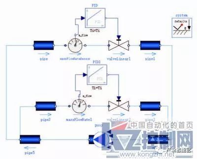 图4 带二支路的管网流量PID控制仿真模型