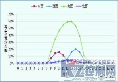 图2 典型日受太阳辐射影响建筑物各面供热量下降比例