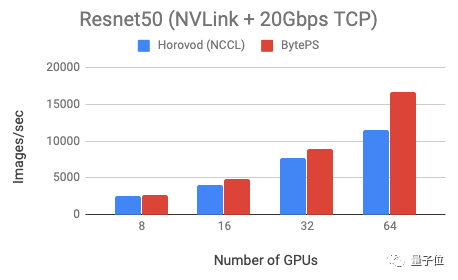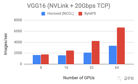 测试表明,与Horovod (NCCL)相比,BytePS在VGG16训练上的速度快100%,Resnet训练速度快44%。