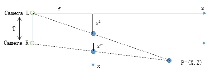 视差d——即左相机成像面上的每个像素点和右相机成像面上的对应点