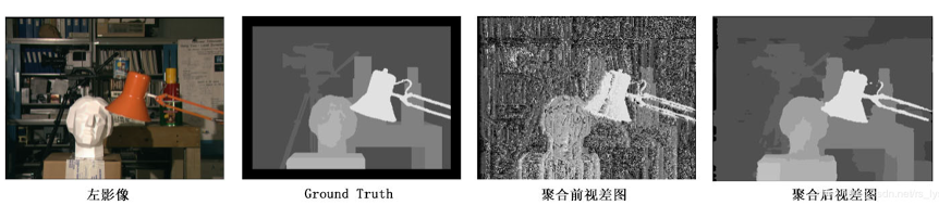 Cost(smooth)来自于领域点的视差传递,通过这种方法,可以有效提升视差计算的准确度,下面是一张对比图: