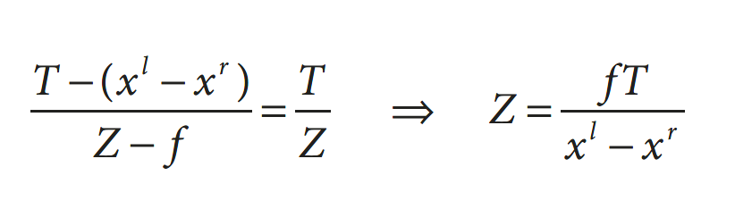 从上面的公式可以看出,如果要计算空间点P的深度Z,必须要知道: