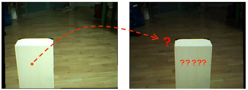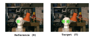 我们的目标是:对于左图的,寻找它在右图中的匹配点
