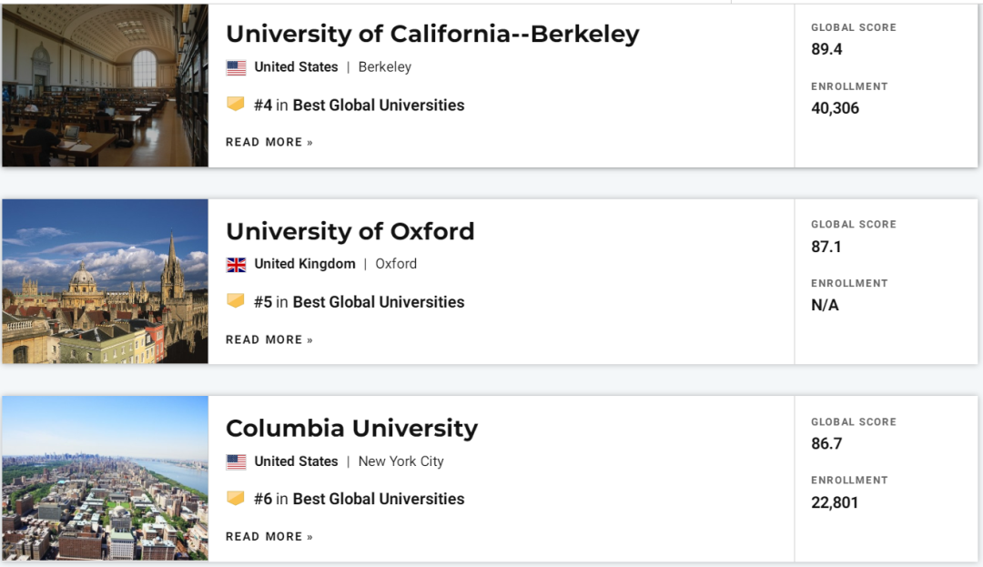 2022年的U.S.News全球大学排名榜单来了!