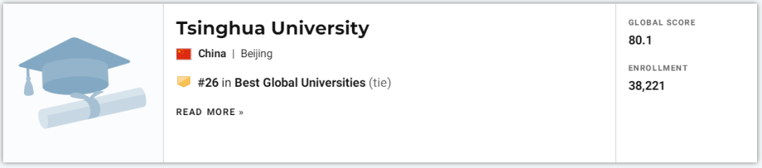 今年清华大学排名全球26位,相比去年进步2位,进入全球Top30,居大陆高校第一。