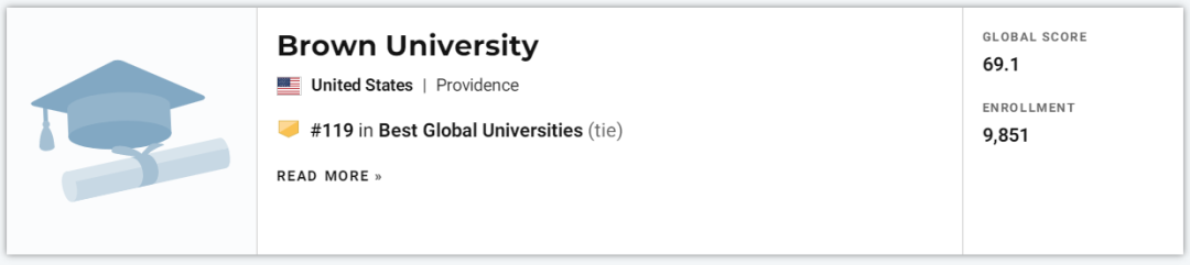 达特茅斯学院和布朗大学就更惨了,它们甚至不在Top100的榜单里。