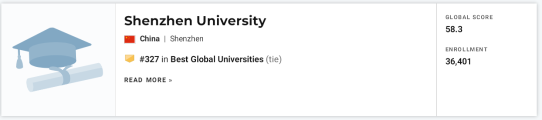 深圳大学这次非常亮眼,上升100名,力压多所985/211院校,成为榜单第327名,名列中国院校第26位。
