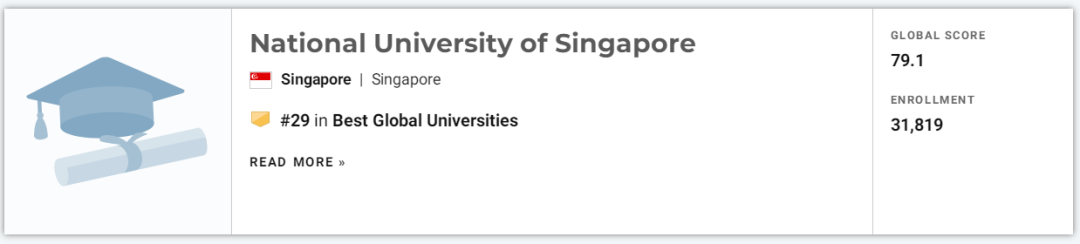 今年的亚洲排名中,新二所排名均有上升,新加坡国立大学上升3位,冲入Top30,名列第29。