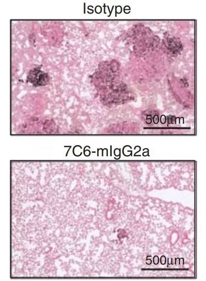 在患黑色素瘤并已发现肺转移的小鼠中,mAb 7C6治疗帮助降低了肿瘤负荷。同时,研究还证实,这种抗肿瘤免疫力主要是通过NK细胞激活NKG2D和CD16 Fc受体介导的。