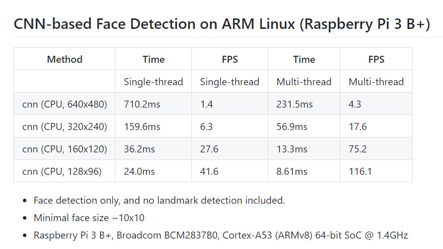 速度快:在树莓派上可以实时进行人脸检测;有采用AVX2(x64平台)和NEON(ARM平台)指令集进行优化。