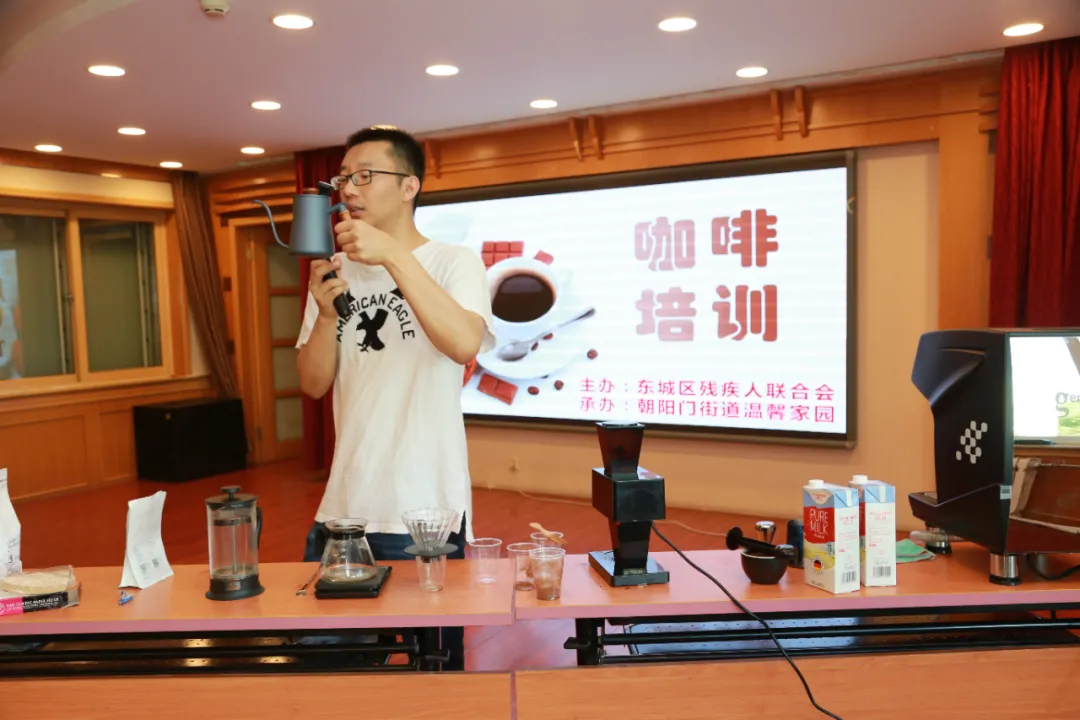 这次的机会,也是因为我当时报名参加 SCA 烘焙师课程认识的同学。她本身有咖啡馆和公司,也对接着一些政府方面的业务。每年北京市残联会给各区残联一笔活动经费,就是为了让残疾人可以学习一门手艺,给他们提供一个能够就业的机会或者是一种社会关爱的行动吧,因此总会寻找各个行业的老师来给授课。