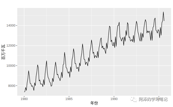 可以看到,日均产量图的季节性模式比月均产量图更简洁明了。日均产量图有效消除了不同月份天数不同造成的影响。简单的模式往往更易于建立模型并得出更精确的预测结果。对于交易天数随着月份改变的销售数据,我们可以做相似的调整。在这种情况下,可以用每个交易日的销量而非每月的总销量来建立模型。