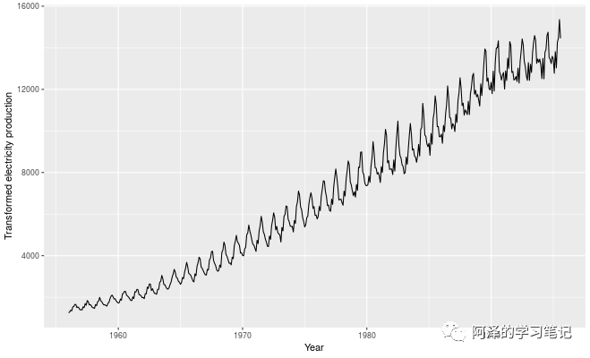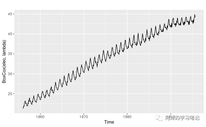 选择好变换后,我们还需要利用逆变换得到原始测度上的预测值,逆 Box-Cox 变换如下表示:
