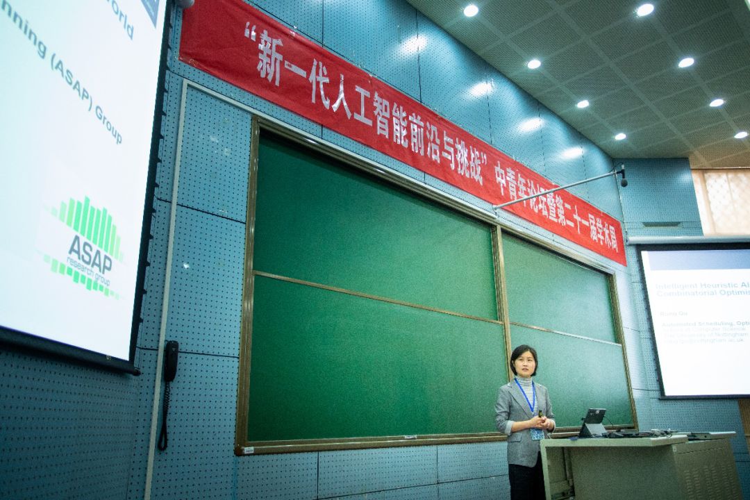 在超启发式算法上,屈嵘教授指出在启发方法空间建模搜索相对于原始问题解空间搜索在搜索空间维度降低和解搜索多样性中具有独特优势,其方法的有效性可通过系统对比随机搜索结果得到验证。然而单纯在启发方法空间的搜索不能保障解空间内最优解的可达性,对此她建议回到原始问题解空间继续使用贪心方式进行搜索,这样可进一步提高搜索的有效性。在理论分析方面,她指出由于方法搜索空间的一维特性便于比较解的相似性,可以进行适应度地貌分析,并根据分析发现解空间的局部最优与全局最优具有正相关特性,这可以为以后的算法设计打下理论基础。在最后,屈嵘教授提到了算法设计当中对人类经验依赖的问题,希望能在未来研究出优化算法设计自动化方式,以期待模型化的算法设计,并引入机器学习方法指导优化算法设计。