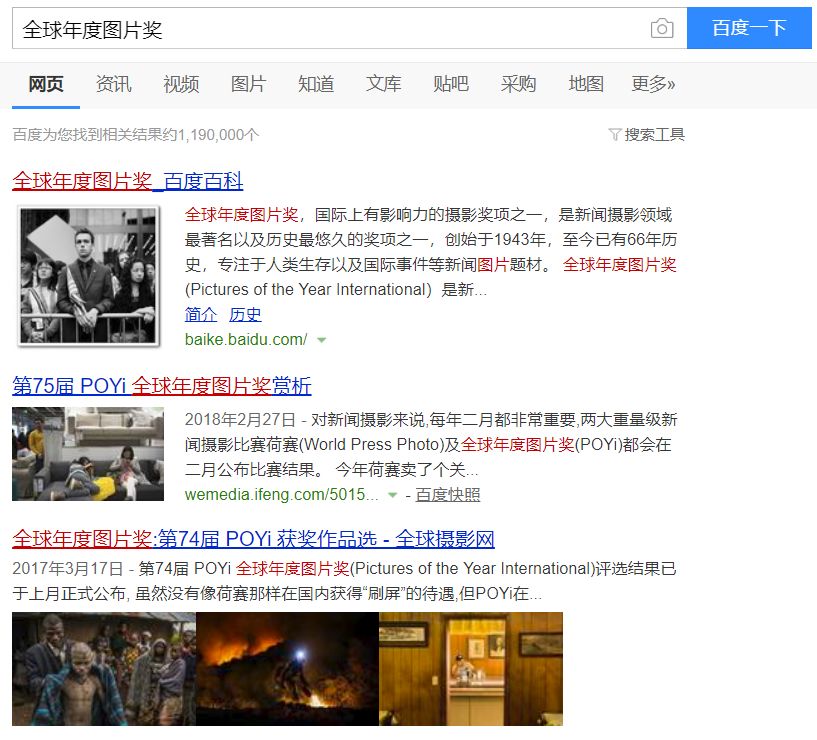 要识别这样的比赛也很简单,百度或者谷歌一搜,如果几十万、上百万条结果,各种媒体铺天盖地的报道,那肯定是真的有名了。如果有不少行业人士对获奖照片的解读、评论甚至批评,那就是在行业内也极具影响力的比赛了。