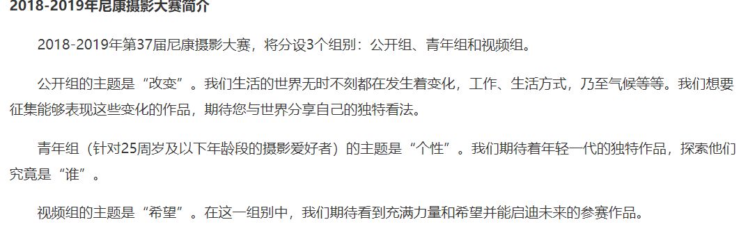 有的比赛要求公开组只能是非职业摄影师参加。有的比赛还为高校学生专门设置了分组。这些都需要看清。