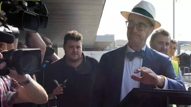 内马尔的律师胡安·克雷斯波(戴帽者)在周四曾前往巴塞罗那支付转会费