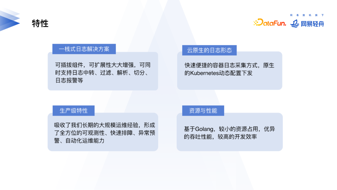 Filebeat设计之初是为了解决Logstash的问题,作为轻量级的日志采集端运行,不适合作为中转。Logstash在日志切分、解析等方面表现出色,但是问题在于性能较弱。虽然Flink性能和表现出色,但我们的很多场景只需要简单的日志切分,Flink一般依赖流式处理基础平台的支持,同时在交付过程中用户要额外付出Flink的机器和运维成本,所以我们需要一个更轻量、成本更低的方案。