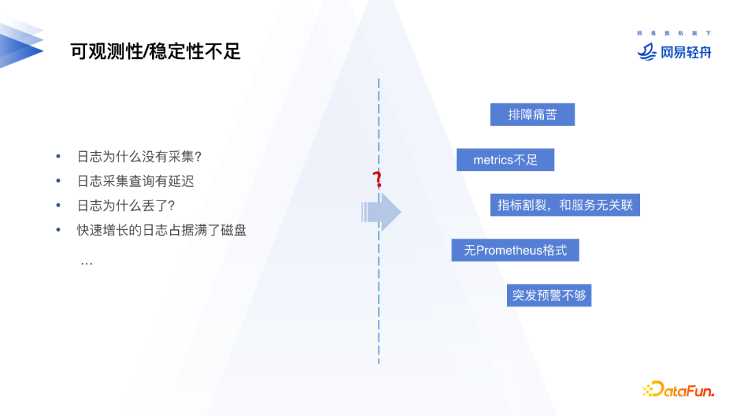 随着接入的业务越来越多,1.0版本的日志架构逐渐暴露了一些问题:超大规模下系统的稳定性问题、日志平台性能问题、排障困难和排障需求不断增多、维护人力成本直线升高等。