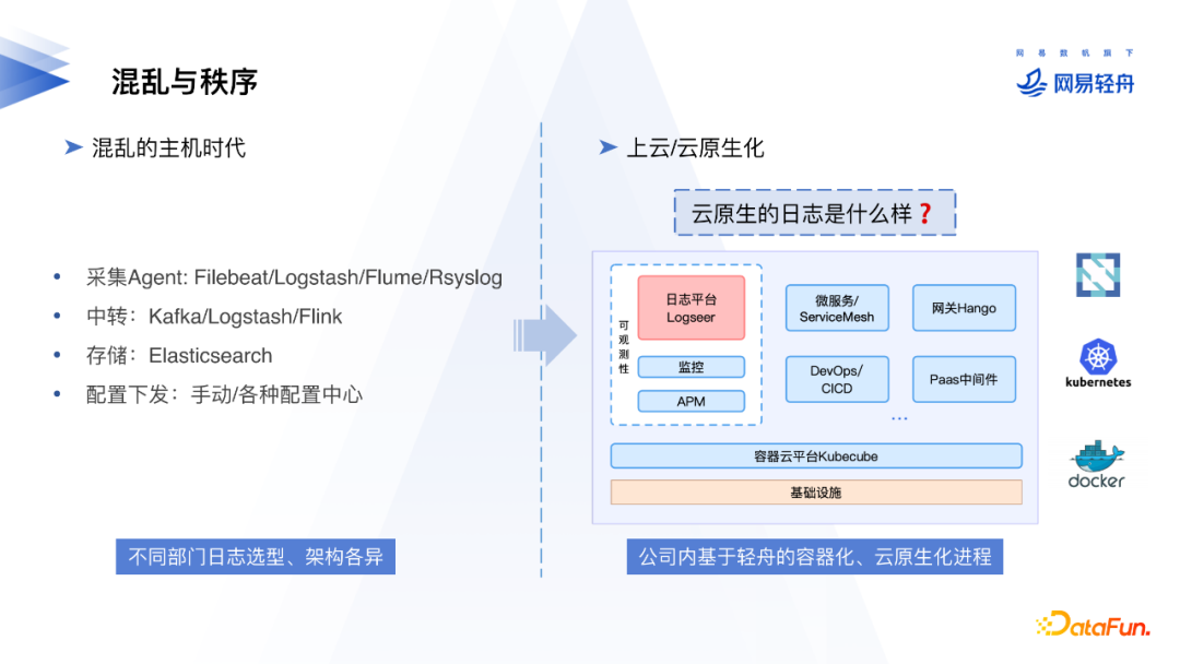 导读:网易从2015年就开始了云原生的探索与实践,作为可观测性的重要一环,日志平台也经历了从主机到容器的演进,支撑了集团内各业务部门的大规模云原生化改造。本文会讲述在这个过程中我们遇到的问题,如何演进和改造,并从中沉淀了哪些经验与最佳实践。