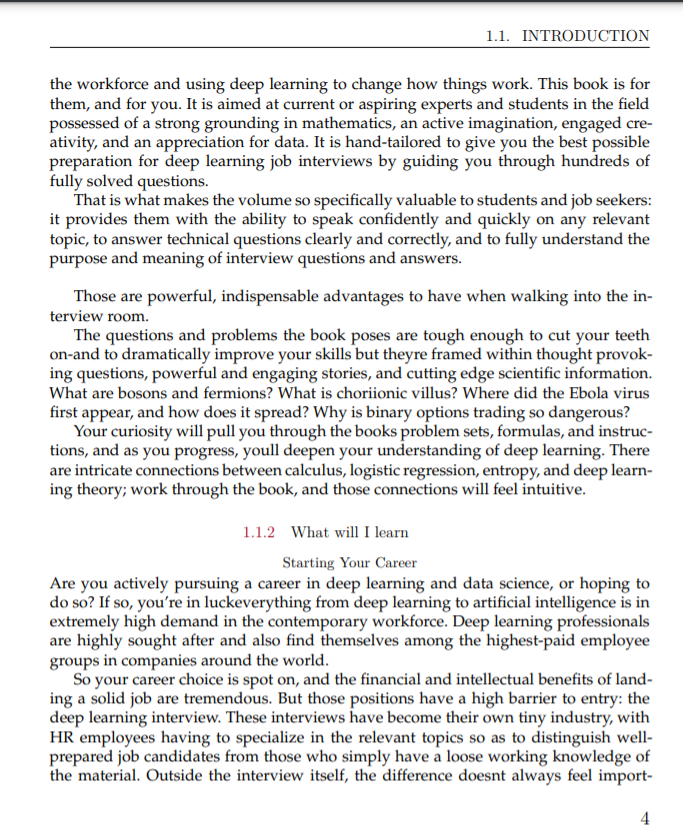 这本书的内容是大量的关于DL工作面试和研究生水平考试的主题。这使得这项工作处于科学发展趋势的最前沿,教授一套核心的实用数学和计算技能。人们普遍认为,每一个计算机科学家的培训都必须包括ML的基本定理,而人工智能几乎出现在每一所大学的课程中。这本书是为这类项目的毕业生设计的一个极好的参考: