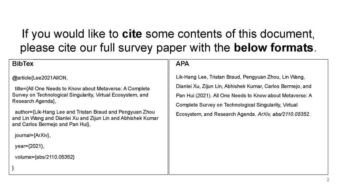 韩国先进科学技术研究所、香港科技大学AR/VR顶级专家,发表元宇宙(技术、虚拟生态系统、研究进程)综述论文(66页pdf、149页PPT)。