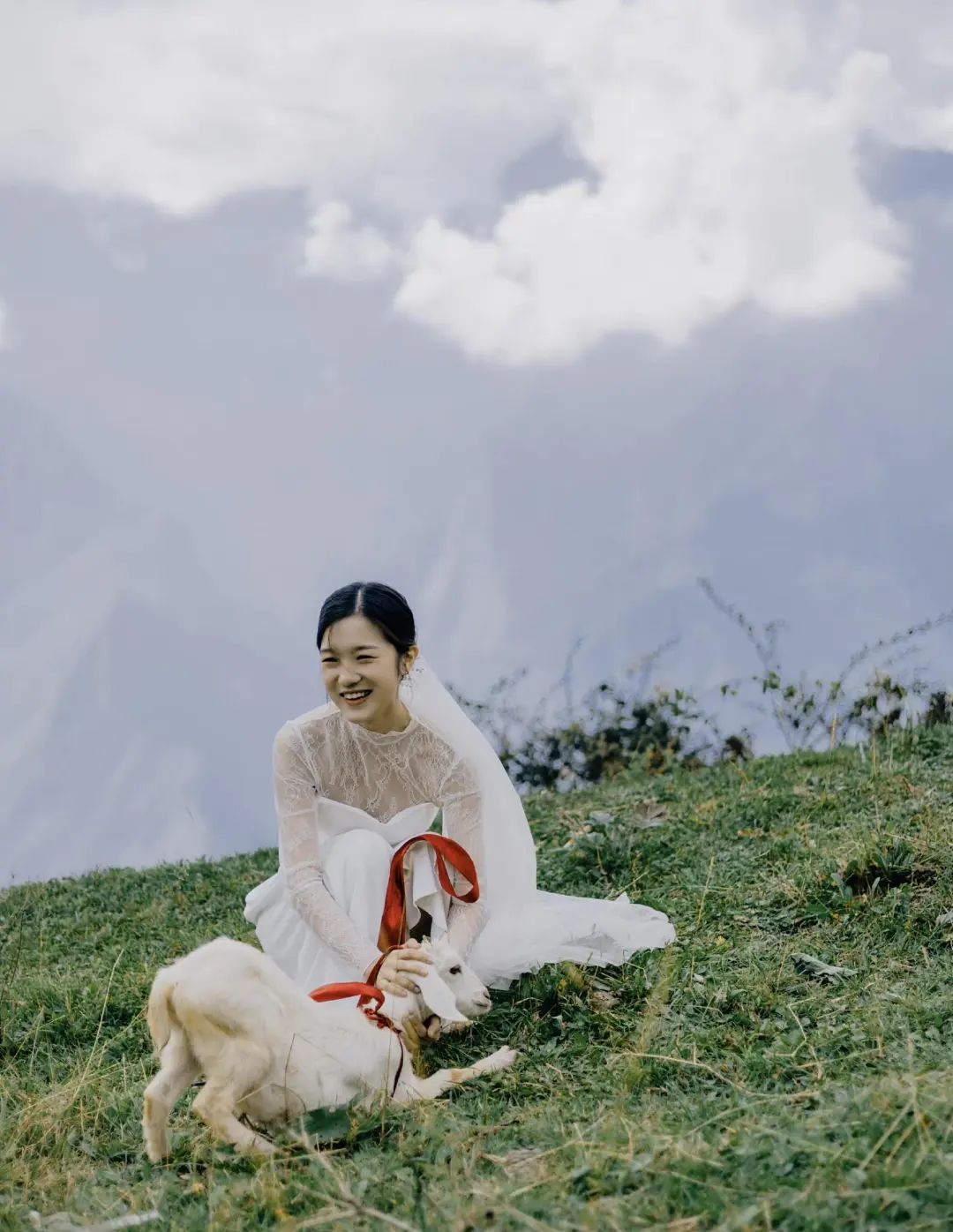 小王提前和藏民借了几只羊,在婚礼现场,几只山羊负责为这对新人送上戒指。她从小就喜欢小动物,觉得相比于花童或者伴娘,小羊的祝福反而更贴近自然,在羌族的文化里,羊寓意着祝福。