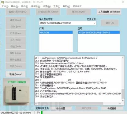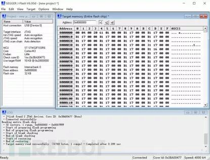 一些情况下,也会通过JTAG/SWD接口进行读取。将提取出的芯片固件在烧录座上,将仿真器与烧录座的JTAG接口连接,插入计算机,打开配套的客户端进行读取。