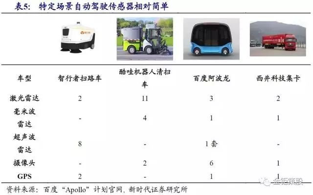 特定场景自动驾驶对传感器要求较低,简单的特定场景可以不需要激光雷达,稍复杂的场景,16线激光雷达和更低级别的雷达组合就可以满足需求。