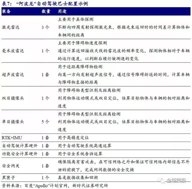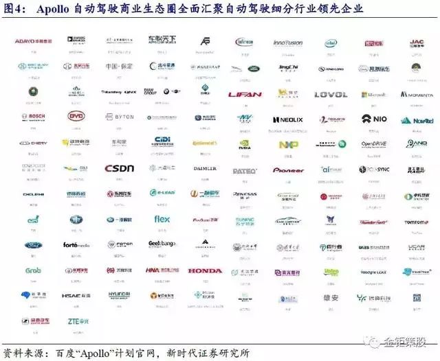 百度于2017年提出”Apollo”计划,该计划整合了从自动驾驶产业链从软件、硬件、传感器到高精度地图等全部方向,同时很好地整合了整车厂和零部件企业,力图打造基于具有统一技术标准的自动驾驶系统。我们认为该计划是国内最有机会实现产业链整合,在软件、硬件层面制定自动驾驶技术标准的自动驾驶项目。