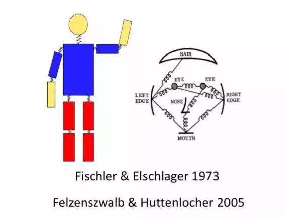Pictorial Structure是其中一个较为经典的算法思路,主要包含两个部分,其一是单元模版(Unary Templates),其二是模版关系(Pairwise Springs),对于模版关系,提出了著名的弹簧形变模型,弹簧形变模型,即对部件模型与整体模型的相对空间位置关系进行建模,利用了物体的一些空间先验知识,既合理约束了整体模型和部件模型的空间相对位置,又保持了一定的灵活性。