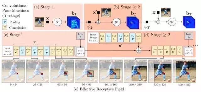 除此之外,使用多阶段监督,对于各个阶段的预测输出都有监督训练,避免过深网络难以优化的问题,而且感受野随着stage的增多而逐渐增大,最后值得一提的是第一阶段对原图提取特征的网络区别于stage > 1的特征提取网络,因为第一个阶段网络的作用是预测初步的结果,而后几个阶段的作用是结合关键点空间先验知识和对原图提取的特征对上一个stage预测的结果做进一步精化。