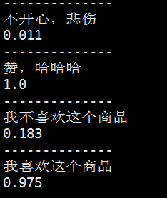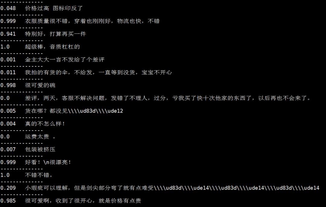 测试集情感分类的部分结果(数值代表该评论是正面情感的概率):