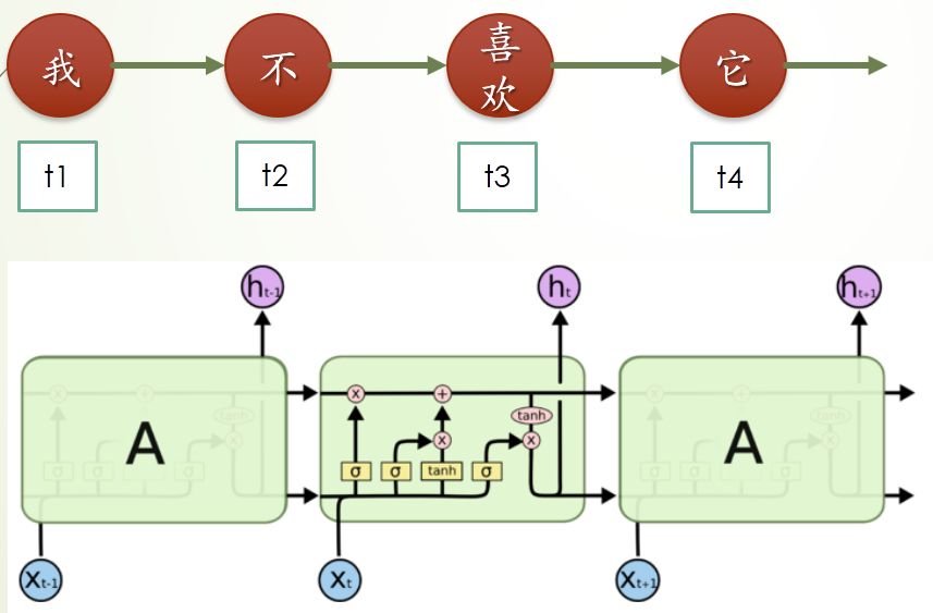 该模型的核心层采用 LSTM (Long short-term memory,长短记忆模型),LSTM 是 RNN (Recurrent neural network,循环神经网络)的一种实现形式,具有“记忆时序”的特点,可以学习到数据上下文之间的关联关系。例如,在含有前置否定词的句子“我喜欢”和“我不是很喜欢”中,虽然“喜欢”这个词表达了正面的情感含义,但是句子前面出现的否定词却更重要,否定词会使语句表达的情感截然相反。LSTM 可以通过上下文学习到这种组合规律,从而提高分类准确率。