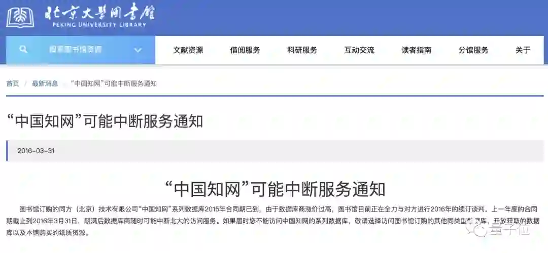 无独有偶,同样是在2016年,北京大学也在3月份发布过可能中断知网的公告:
