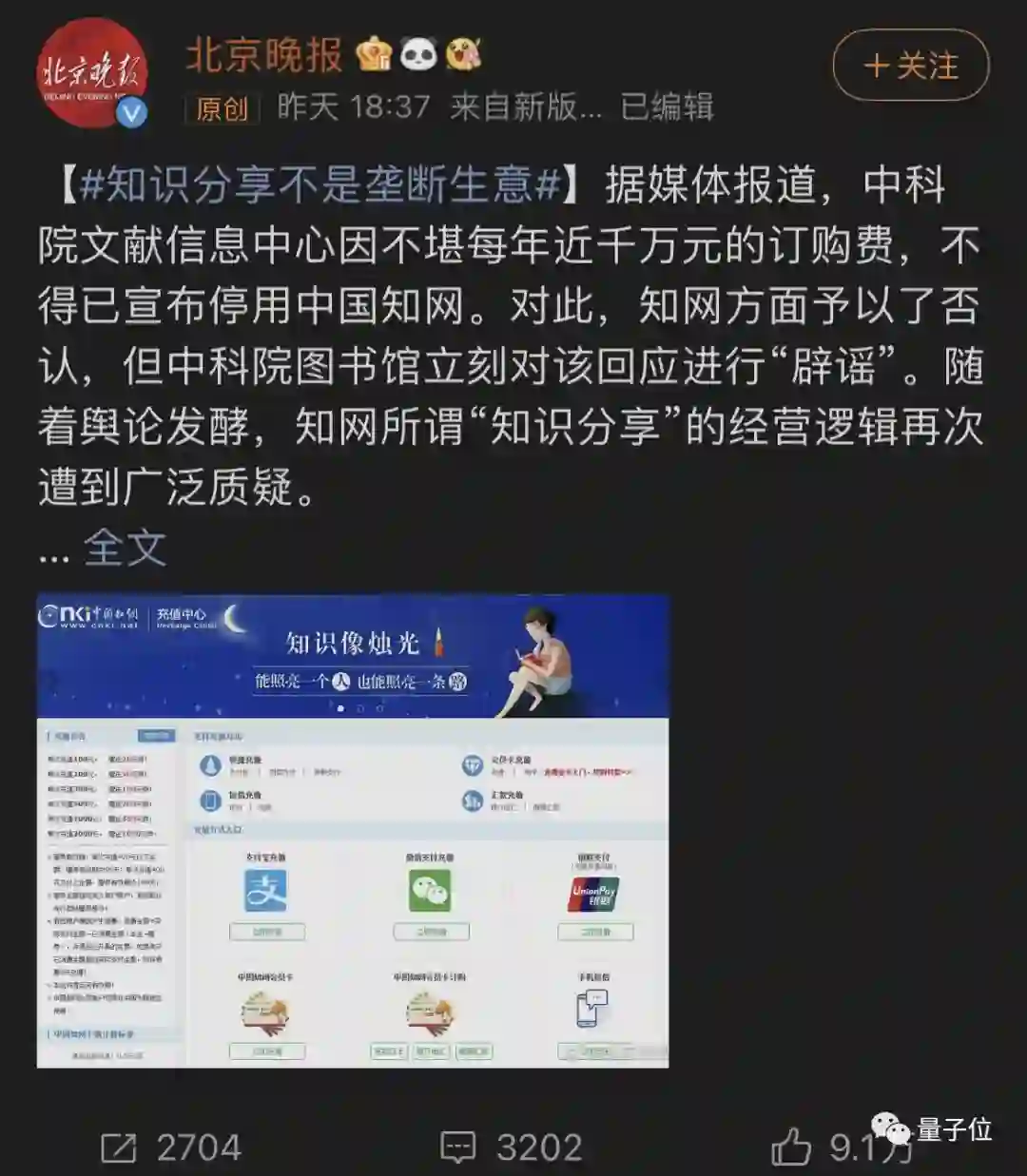 随后北大图书馆相关负责人曾表态说:“知网的购买费用涨价过高,已超出了图书馆的预算限额”。