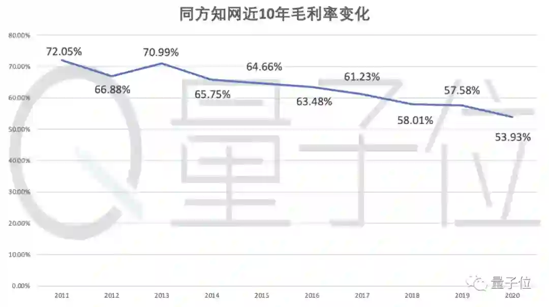 而从毛利率角度来看,知网近10年的该指标全部在50%以上,最高甚至达到了72.05%。