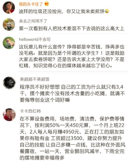 可能短期而言摊饼比敲代码赚钱多;但长期而言,对于刚毕业的他们来说,摊饼很难规模化、公司化,如果是一个具有多年营销和管理经验的人投身此行业,开个连锁倒还有希望。