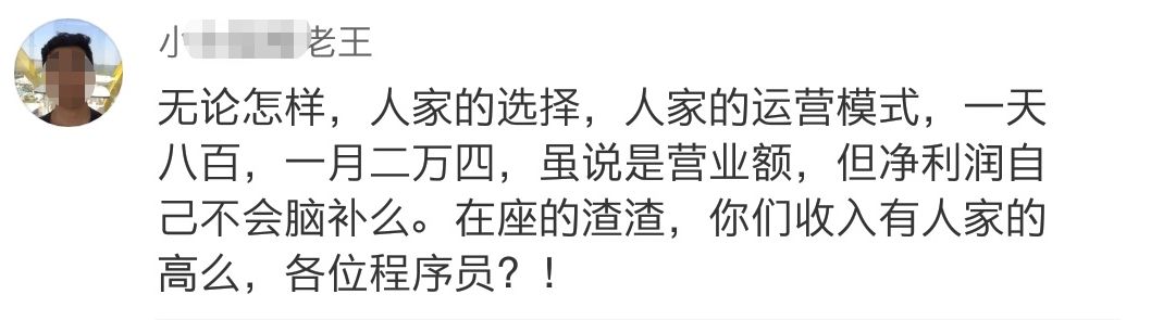 那好,咱不妨换个角度来播报新闻:“神级程序员,一个月只能挣四天卖卷饼的钱!”又该作何感想?