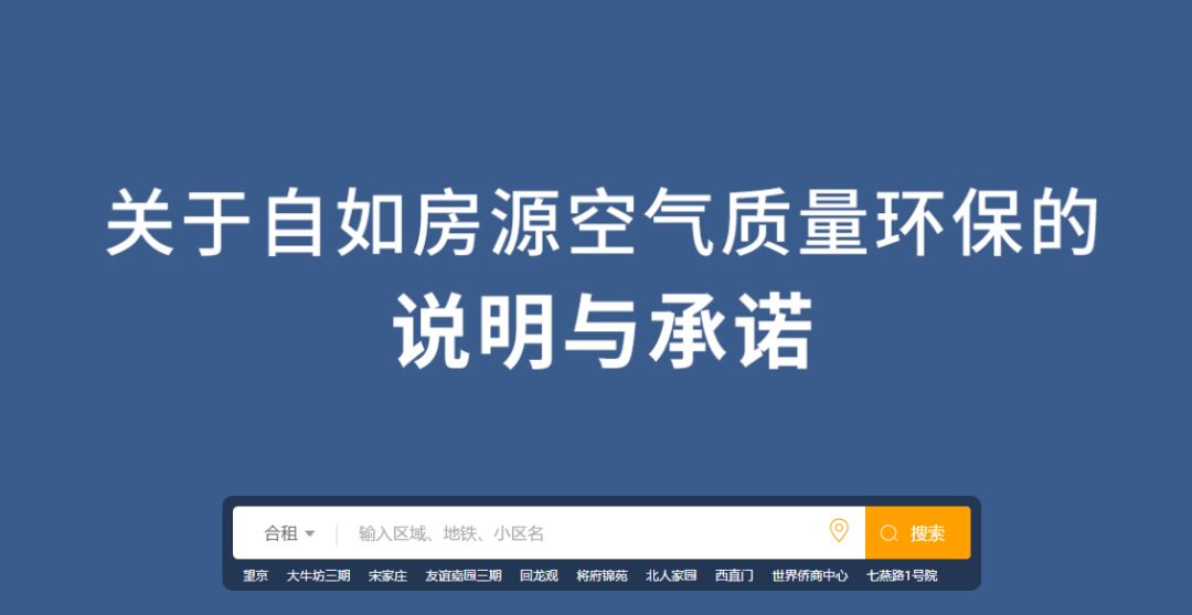 同时自如还在官网发布了关于自如房源空气质量环保的说明与承诺