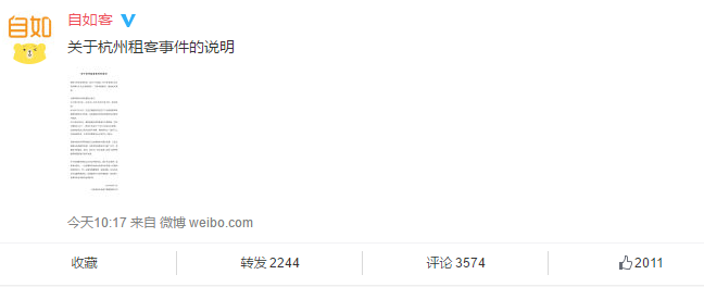 针对这一个突发性的消息,自如客在官方微博进行了回应