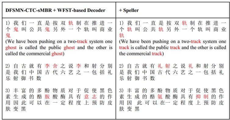Speller 的输入是前端模型 CTC 的解码结果,预测的是真实的标注。