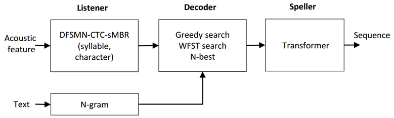 Listener 是一个基于 DFSMN-CTC-sMBR 的声学模型,可以基于输入的语音信号,预测每个声学建模单元的后验概率。