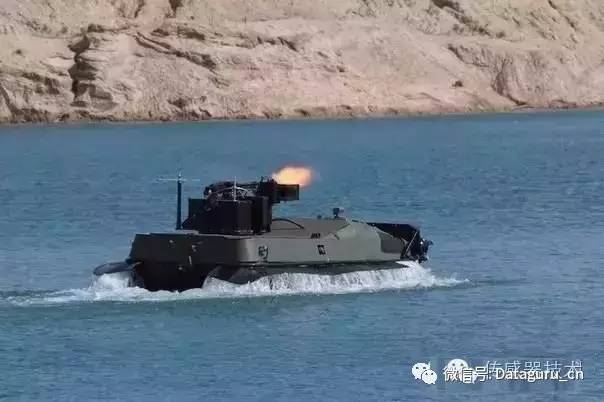 “暗语”轮式战斗机器人。该型机器人采用8×8全地形车底盘,正面安装有整体式防护装甲,战斗全重一吨,长3.35米,宽1.85米,高1.65米。动力系统为柴油发动机,一次加油可以连续工作20小时;陆地最大行驶速度20千米/小时,水上最大航速4.6千米/小时;武器系统包括一挺7.62毫米机枪、三具RPG-26反坦克火箭筒和两部RShG-2榴弹发射器。该型机器人主要用于山地、水网地形作战,还可为海军陆战队登陆作战提供火力支援。