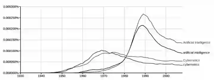 “人工智能”与“控制论”词频对比(引自《人工智能简史》)