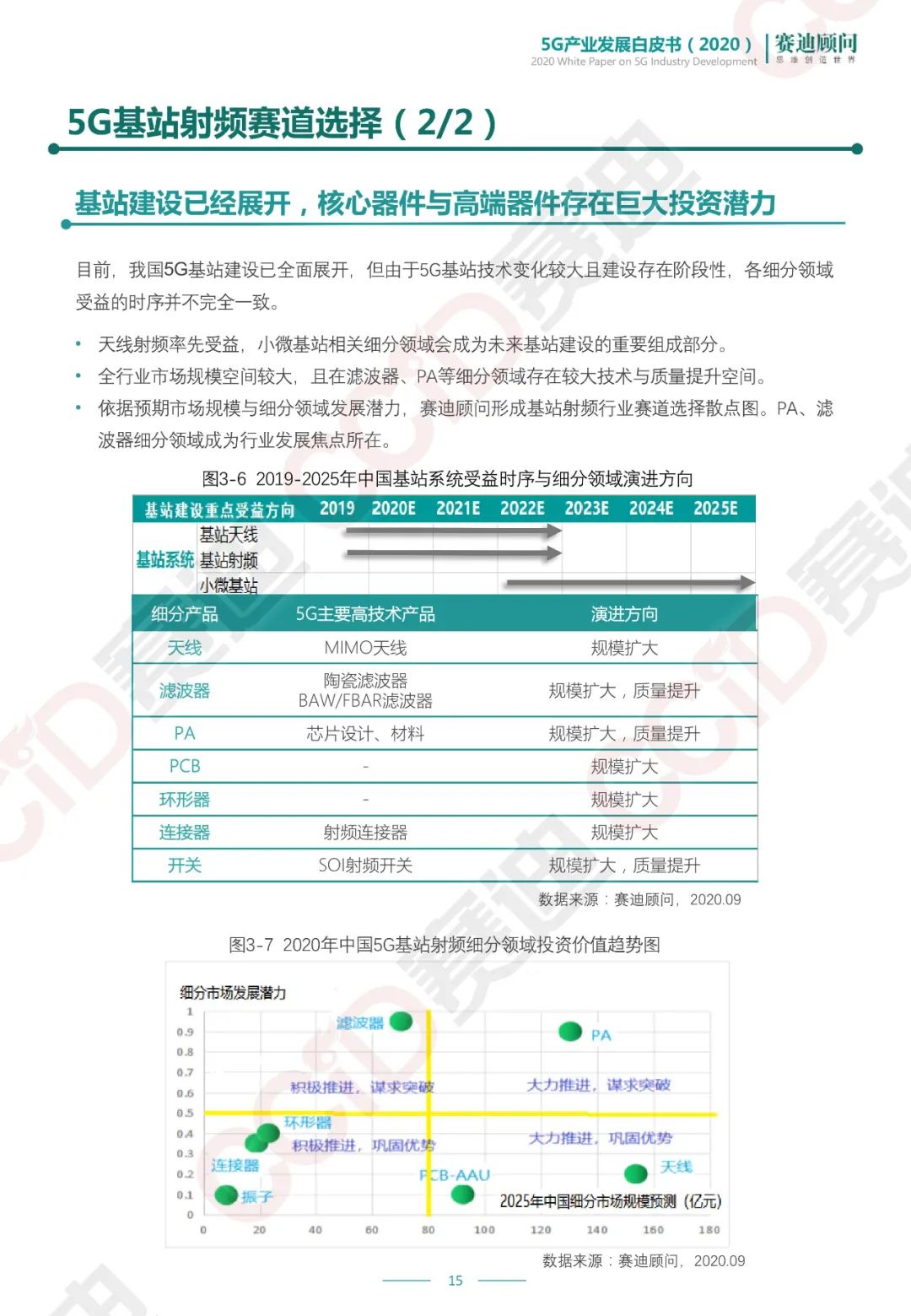 基站射频:我国拥有庞大市场及强大工业制造能力,但在高端滤波器、功率放大器等方面仍有较大技术进步空间,在市场激励和政策扶持的双重引导下,我国基站射频行业在关键领域已取得一定进展,高质量发展未来可期
