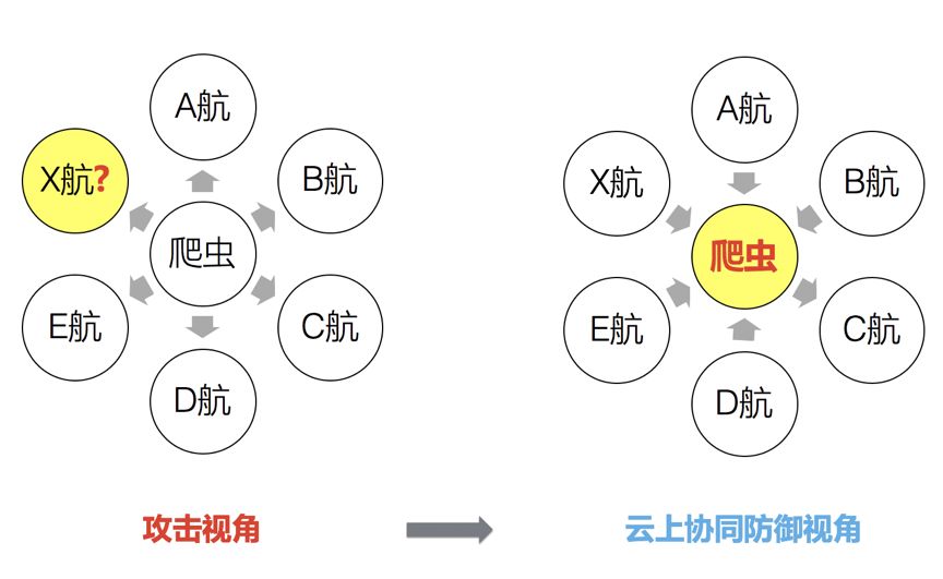 以航空行业为例,机票向来是爬虫重点关注的对象,从爬虫的角度来看,一个黄牛或旅行社背后的爬虫往往会光顾各大航司以获取最全的票价信息,所以当我们检测到一个爬虫光顾了ABCDE航司后,你说他爬X航的概率大吗?当然。 这个不是假设,而是我们已经在实际的流量中发现的行为。于是我们由此拓展开来,基于一定的模型生成在多家航司网站上有过可疑行为的,实时的(注意是实时的哦)爬虫库,这就是典型的云上协同防御模型。这样对于新接入的X航来说,我们甚至可以用情报的思路把防护做到事前。