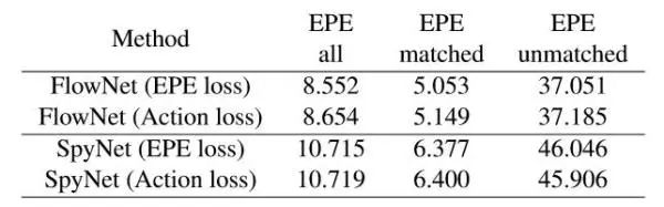 光流算法通常使用终点误差(end-point-error, EPE)来衡量,但EPE的大小与行为识别效果的好坏并没有很强的相关性